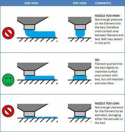 Onvoldoende ruimte om het filament te extruderen waardoor je het bed kan beschadigen.